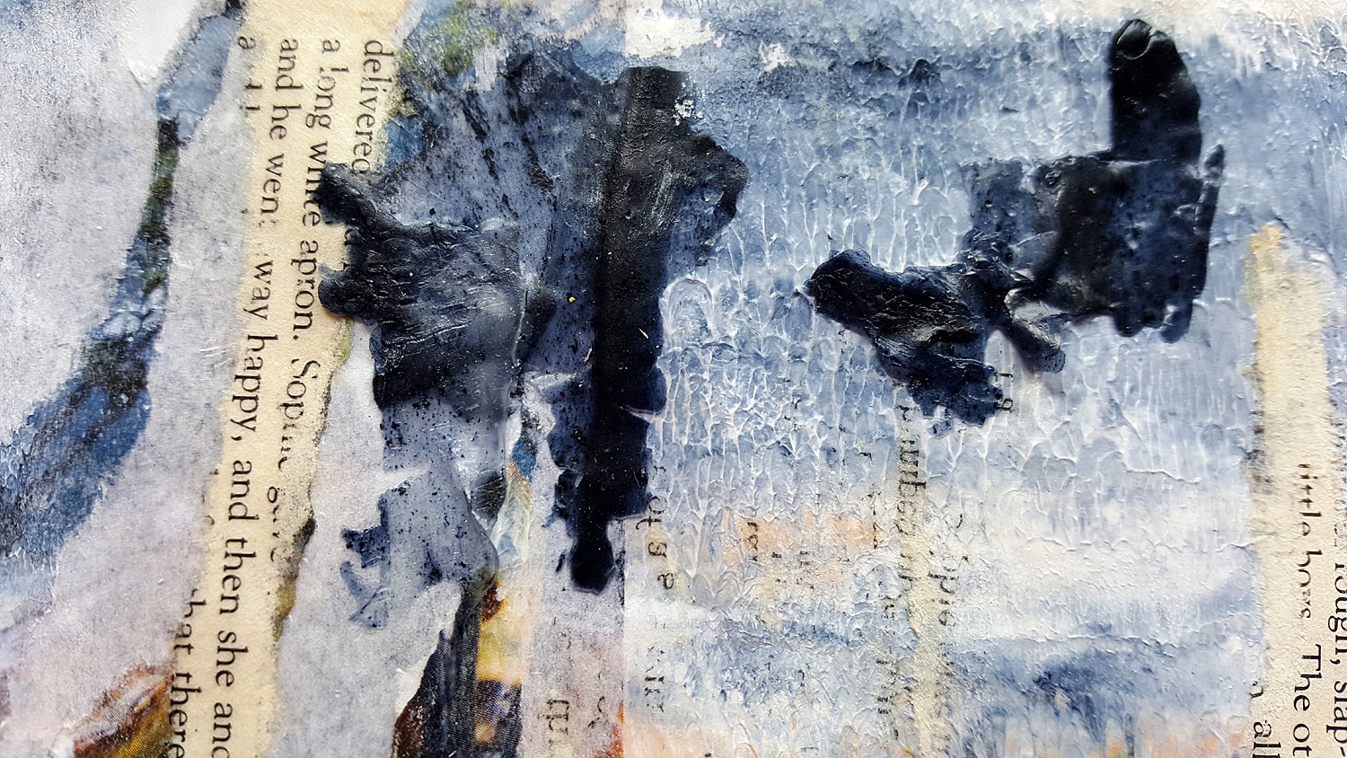 The last skin (paynes grey thinly applied) resulted in lots of tiny peely bits which I decided to keep for adding texture in collage.